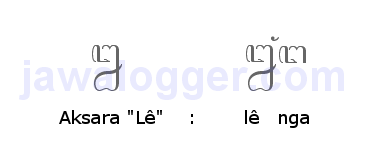 2. Aksårå pasangan Lê, seperti pada kata "Tumbas lêngå" (Beli minyak).