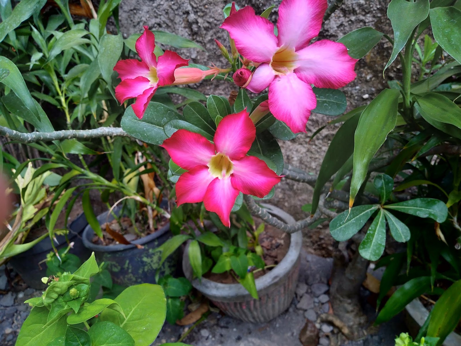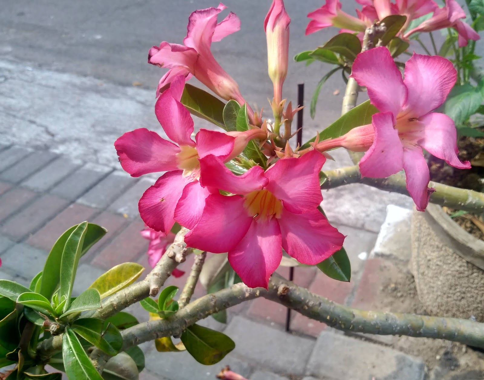 Jadi, ceritanya saya ini sering melihat bunga ini di pinggir jalan setiap kali melintas. Entahlah, mungkin banyak orang suka dengan bunga yang satu ini. Namanya bunga Adenium. Mungkin Anda juga sering mendapati bunga ini ada di depan rumah tetangga atau yang sering Anda lewati.